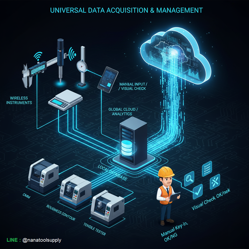 Save up to 50% working time with IOT Software, it can be used with Mitutoyo (U-Wave), Mahr (MarConnect), Sylvac (Sylcom), Torque wrench, Weight balance, machine, etc.